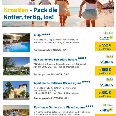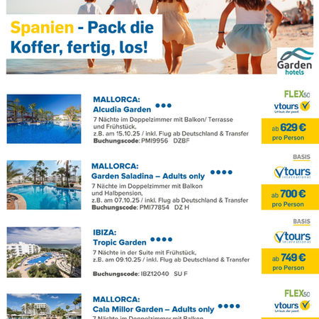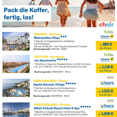 Der Sommer ist da – und mit ihm unsere handverlesenen Reisedeals für spontane Sonnenhungrige! Ob All-Inclusive in der Türkei, Familienurlaub auf Kreta oder romantische Tage auf Mallorca – wir haben für jeden Geschmack das passende Angebot.